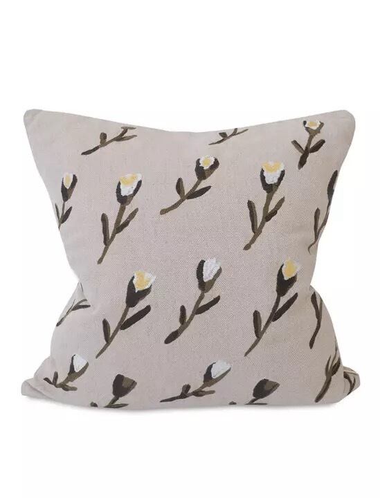 お花柄の刺繍が前面に施されたクッションカバー。ナチュラルだけど華やかな雰囲気も漂わせる大きめなお花柄は、お部屋のアクセントになってくれそうです。