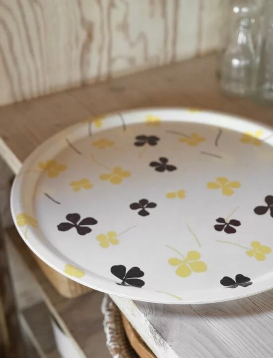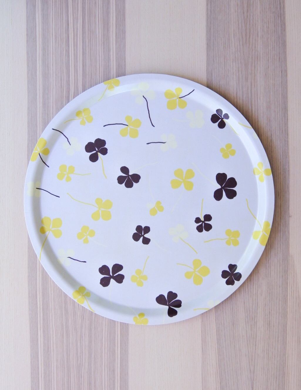 幸せを運んできそうなクローバー柄が、明るくて楽しい印象のトレイ。